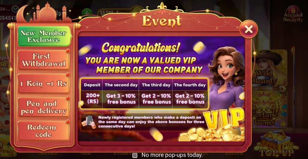 Players can enjoy: New user welcome bonuses. Daily login rewards, Free spins bonus on games of choice. Event promotion and festival promotions. These bonuses can make you spend more just for playing.