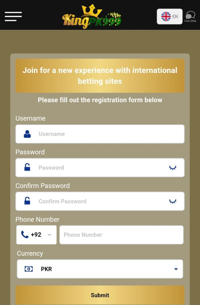 - Log in to your KingPk999 account