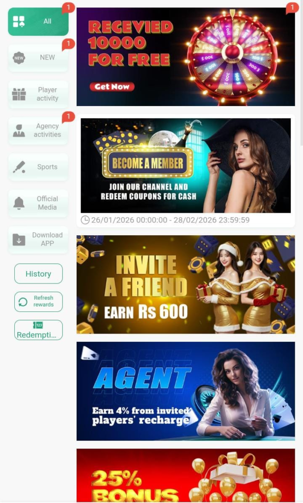 The apk provides one with access to the various best casino games, which include, Slot machine games, Lucky spin wheels, Color prediction games, Number-based betting games. Such diversity makes sure that a player is never bored and has something new to play around.